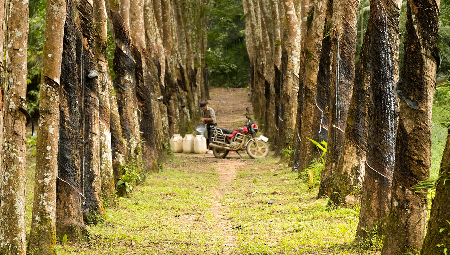 The uppers of these sneakers are made from a beautifully textured organic hemp canvas, while the sidewall foxing and outsole are natural rubber latex from the Hevea Brasiliensis, tapped and collected by hand.